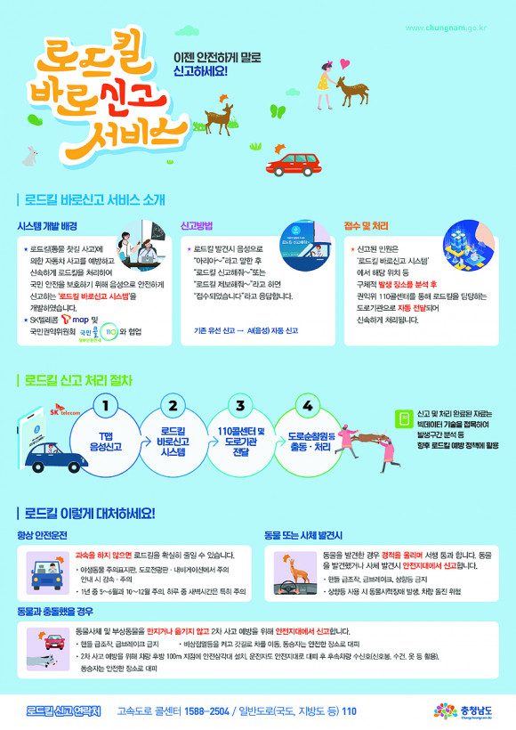 Ãæ³²µµ°¡ µµ¹Î ¾ÈÀüÀ» À§ÇØ º¸´Ù ½±°í ¾ÈÀüÇÑ ·Îµåų ½Å°í ½Ã½ºÅÛÀ» ¼±º¸ÀδÙ. µµ´Â 7¿ù 27ÀϺÎÅÍ Àü±¹ ÃÖÃÊ·Î µµ³» 15°³ ½Ã¡¤±º ´ë»ó ¡®·Îµåų ¹Ù·Î½Å°í ¼ºñ½º¡¯ ½Ã¹ü »ç¾÷À» ½Ç½ÃÇÑ´Ù°í ¹àÇû´Ù.