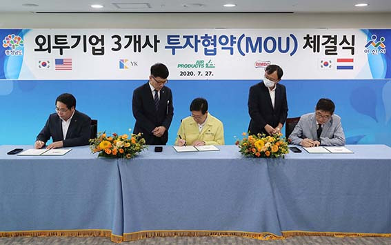 ¾ç½ÂÁ¶ Áö»ç´Â 7¿ù 27ÀÏ µµÃ» »óȲ½Ç¿¡¼ ±Û·Î¹ú ¿ì·® ¿ÜÅõ±â¾÷ 3°³»ç ´ëÇ¥ÀÌ»ç, ¿À¼¼Çö ¾Æ»ê½ÃÀå µîÀÌ Âü¼®ÇÑ °¡¿îµ¥ ¿ÜÀÚÀ¯Ä¡ ÅõÀÚÇù¾à(MOU)¸¦ ü°áÇß´Ù.