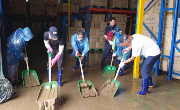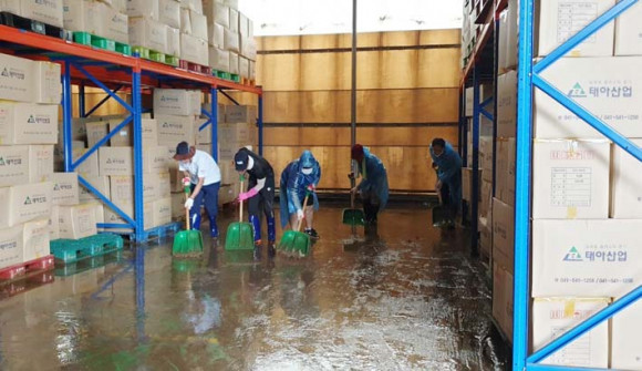µµ °ü±¤ÁøÈï°ú Á÷¿øµéÀº ÇÇÇØ °øÀåÀ» ã¾Æ ºñ¿¡ ÈÛ¾µ·Á ³»·Á¿Í ½×ÀÎ Åä»ç¸¦ Ä¡¿ì°í, Á¥Àº °ø±â±¸ ¼¼Ã´ ¹× Á¤ºñ, À̹°Áú·Î ¸·Èù ¹è¼ö·Î ¶Õ±â µî º¹±¸ Ȱµ¿À» ÆîÃÆ´Ù.