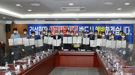 µµ´Â 8¿ù 10ÀÏ µµÃ»¿¡¼ À̿켺 ¹®ÈüÀ°ºÎÁö»ç, ±è±Ô¼® ´ëÀü°í¿ë³ëµ¿Ã»Àå, Áøº´ÁØ Àü±¹°Ç¼³»ê¾÷³ëµ¿Á¶ÇÕ À§¿øÀå, Á¤¿ø¿õ ´ëÇѰǼ³Çùȸ Ãæ³²µµÈ¸¡¤¼¼Á¾½ÃȸÀå, ÀÌÈ£¸í ´ëÇÑÀü¹®°Ç¼³Çùȸ ¼¼Á¾½Ã¡¤ÃæÃ»³²µµÈ¸È¸Àå ¹× ¼Ò¼Ó»ç¾÷Àå µîÀÌ Âü¼®ÇÑ °¡¿îµ¥, ¡®µµ³» °Ç¼³ÇöÀå »êÀç»ç¸Á»ç°í ¹× Ȥ¼±â °Ç°º¸È£ ½ÇõÇù¾à¡¯À» ü°áÇß´Ù.