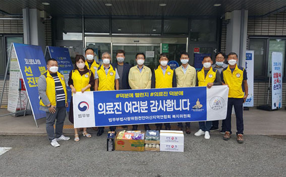8¿ù 13ÀÏ À̺´Ãµ ȸÀåÀº º¹ÁöÀ§¿øÈ¸ ¹è¼ºÀ± À§¿øÀå, ¹ý»ç¶ûÀ§¿øµé°ú ÇÔ²² Ãæ¹«º´¿ø°ú ¾Æ»ê½Ãº¸°Ç¼Ò¸¦ ¹æ¹®ÇØ Äڷγª19 È®»ê ¹æÁö¸¦ À§ÇØ ÇöÀå¿¡¼ °í»ýÇÏ´Â ÀÇ·áÁø¿¡°Ô °¨»ç¿Í ÀÀ¿øÀÇ Àǹ̷Π¸¶·ÃÇÑ ¶±°ú °£½ÄÀ» Áö¿øÇß´Ù.
