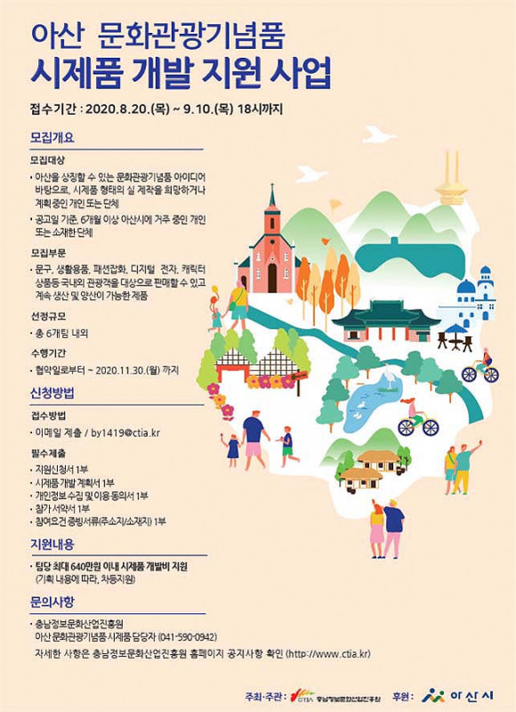¾Æ»ê½Ã(½ÃÀå ¿À¼¼Çö)¿Í Ãæ³²Á¤º¸¹®È»ê¾÷ÁøÈï¿ø(¿øÀå ¸Íâȣ, ÀÌÇÏ ÁøÈï¿ø)Àº ´ÙÀ½´Þ 10ÀϱîÁö ¡®2020³â ¾Æ»ê½Ã ¹®È¡¤°ü±¤±â³äǰ ½ÃÁ¦Ç° °³¹ßÁö¿ø¡¯ Âü¿©ÀÚ¸¦ ¸ðÁýÇÑ´Ù°í 8¿ù 20ÀÏ ¹àÇû´Ù.