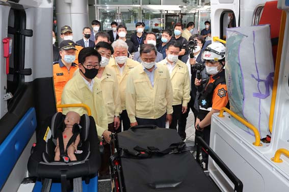 À̳¯ ¹ß´ë½Ä°ú ÇÔ²² ÇöÀå¿¡ º»°Ý ÅõÀÔÇÏ´Â ÀÓ»êºÎ Àü¹® 119±¸±Þ´ë¿¡´Â ±¸±Þ´ë¿ø 27¸í°ú Ư¼ö ±¸±ÞÂ÷ 3´ë¸¦ ¹èÄ¡Çß´Ù. ±¸±Þ´ë¸¦ ²Ù¸®¸ç »õ·Ó°Ô µµÀÔÇÑ Æ¯¼ö ±¸±ÞÂ÷´Â ¼ÒÇü¹ö½º¸¦ °³Á¶ÇØ ¸¸µé¾ú´Ù.