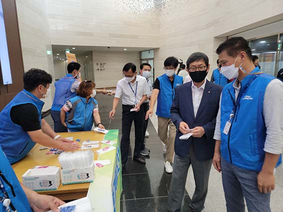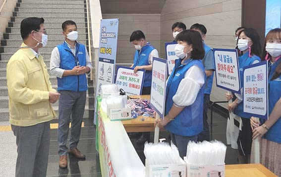 Ãæ³²³ëÁ¶´Â 8¿ù 26ÀÏ Ãæ³²µµÀÇ ¡®»çȸÀû °Å¸®µÎ±â 2´Ü°è¡¯ ½Ç½Ã¿¡ ¹ß¸ÂÃç ÀÏȸ¿ë ¸¶½ºÅ© ¹× ¸¶½ºÅ© ²ö µî 2õ¼¼Æ®¸¦ ±ä±Þ ±¸ÀÔÇØ Á÷¿øµé¿¡°Ô ¹èÆ÷Çϸç Áö¼ÓÀûÀÎ ½Ç³»Âø¿ëÀ» ´çºÎÇß´Ù.