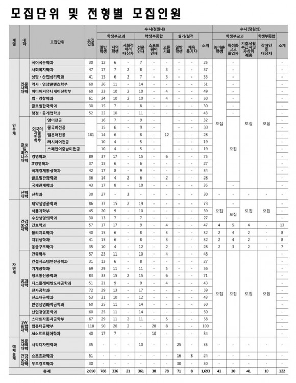 ¼±¹®´ëÇб³°¡ 2021Çг⵵ ¼ö½Ã¸ðÁý¿¡¼ 1õ815¸íÀ¸·Î Àüü ¸ðÁýÀοøÀÇ 88.5%¸¦ ¼±¹ßÇÑ´Ù. ´ëÀÔÀüÇüÀÇ Áö¼Ó¼º°ú ¿¹Ãø°¡´É¼ºÀ» ³ôÀ̱â À§ÇØ Àü³âµµ ´ëÀÔÀüÇü ü°è¸¦ ±×´ë·Î À¯ÁöÇϰí ÀÖ´Ù.