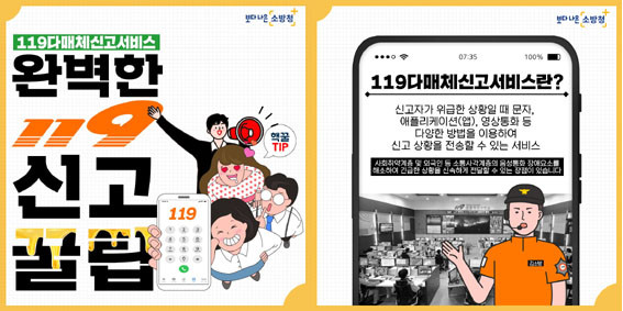 ¡®119´Ù¸Åü½Å°í ¼ºñ½º¡¯´Â À½¼ºÀ» ÀÌ¿ëÇØ 119¿¡ ½Å°íÇÏ´ø ¹æ½ÄÀ» ¹þ¾î³ª ¹®ÀÚ, ½º¸¶Æ®Æù ¾Û, ¿µ»óÅëÈ µîÀ» ´Ù¾çÇÑ ¹æ¹ýÀ» ÅëÇØ »çȸÃë¾à°èÃþ ¹× ¿Ü±¹ÀÎ µî ¼ÒÅë»ç°¢°èÃþÀÇ À½¼ºÅëÈ Àå¾Ö¿ä¼Ò¸¦ ÇØ¼ÒÇÑ »õ·Î¿î ½Å°í ¼ºñ½º¸¦ ¸»ÇÑ´Ù.