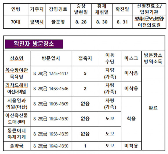 Áö³ 8¿ù 31ÀÏ È®Áø ÆÇÁ¤À» ¹ÞÀº ÆòÅÃ#95¹ø ȯÀÚÀÇ ¾Æ»ê½Ã À̵¿µ¿¼±ÀÌ °ø°³µÆ´Ù.