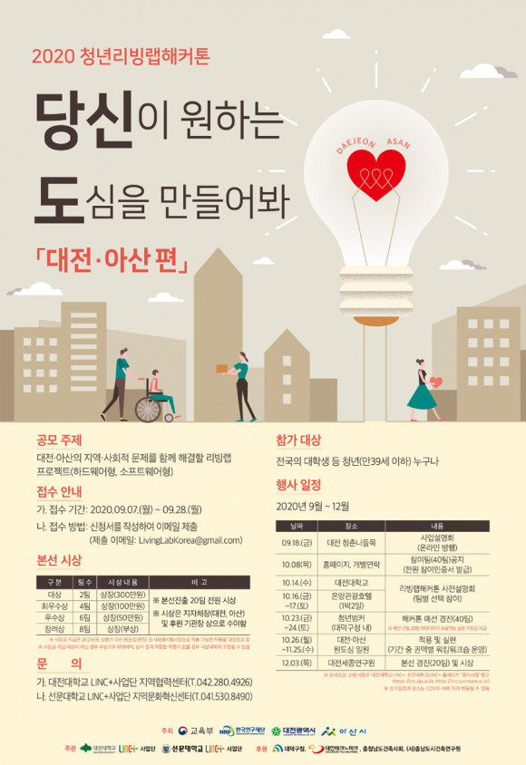 °ø¸ð´Â ´ëÀü°ú ¾Æ»êÀÇ Áö¿ª ¹®Á¦ ÇØ°áÀ» À§ÇÑ ¸®ºù·¦ ÇÁ·ÎÁ§Æ®¸¦ Çϵå¿þ¾îÇü(ICT ±â¼ú Á¦Ç° µî)°ú ¼ÒÇÁÆ®¿þ¾îÇü(Ä¿¹Â´ÏƼ ¹× »çȸÀû °æÁ¦ Ȱ¼ºÈ, µðÀÚÀÎ µî) ºÐ¾ß·Î ³ª´² ÁøÇàÇÑ´Ù.