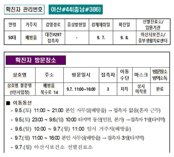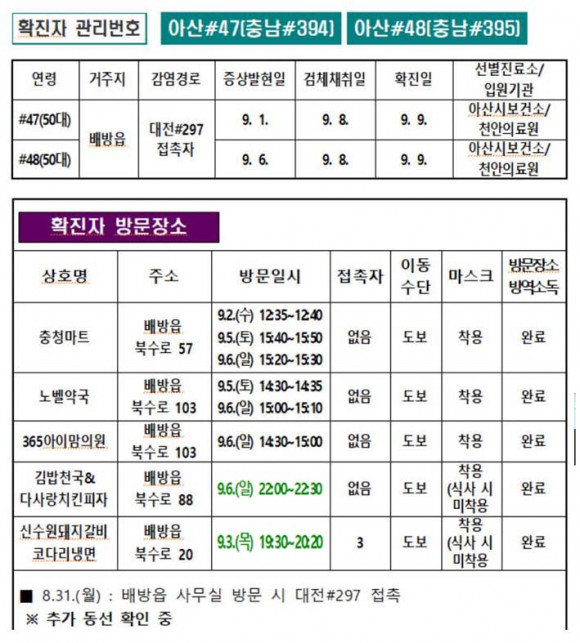 ¾Æ»ê½Ã´Â Áö³ 9¿ù 8ÀÏ ¹ß»ýÇÑ Äڷγª19 ¾Æ»ê½Ã #44¹ø°ú #45¹ø ȯÀÚ¿Í 9ÀÏ ¹ß»ýÇÑ #47¹ø°ú #48¹ø ȯÀÚÀÇ À̵¿ µ¿¼±À» 10ÀÏ °ø°³Çß´Ù.