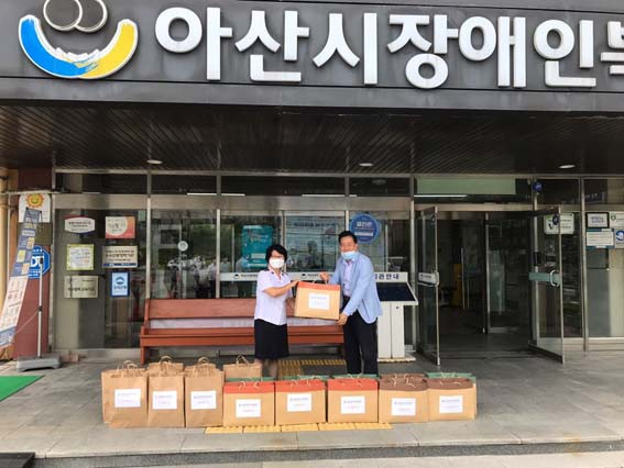 ¾Æ»ê½ÃÀå¾ÖÀκ¹Áö°üÀº Àü´Þ½Ä¿¡ Âü¼®ÇÑ ºÀ»ç´Ü¿øÀ» ´ë»óÀ¸·Î º¹Áö°ü¿¡¼ ¿î¿µÇÏ´Â Àå¾ÖÀκ¹Áö»ç¾÷À» ¼Ò°³Çϰí, ÈÄ¿ø±ÝǰÀÇ »ç¿ë¸ñÀû°ú Àü´Þ °úÁ¤À» ¾È³»Çß´Ù.