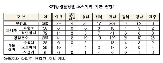 À̸í¼ö ÀÇ¿øÀº ¡°´ëÇѹα¹ Àüü ¼¶ Áß »ç¶÷ÀÌ »ç´Â À¯Àεµ°¡ 360°³Àε¥ ÀÌ Áß 30%ÀÎ 108°³ À¯Àεµ¿¡¸¸ °æÂû°ü¼°¡ ÀÖ´Ù´Â °ÍÀº µµ¼Áö¿ªÀÇ Ä¡¾È°ÝÂ÷¸¦ ½ÉȽÃ۰í Ä¡¾È°ø¹éÀ» ¹æÄ¡ÇÏ´Â °Í¡±À̶ó¸ç, ´ëÃ¥ ¸¶·ÃÀ» Ã˱¸Çß´Ù.