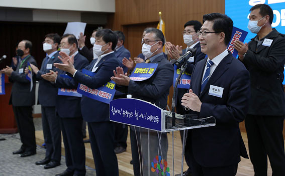¾ç Áö»ç´Â ¡°Ãæ³² Çõ½Åµµ½Ã ¿Ï¼ºÀ» ÅëÇØ ´ëÇѹα¹ Áß½ÉÀ» ÇâÇÑ Ãæ³²ÀÇ ²ÞÀÌ º¸´Ù È®½ÇÇÏ°Ô ±¸ÇöµÉ ¼ö ÀÖµµ·Ï ¸ðµç ³ë·ÂÀ» ±â¿ïÀ̰ڴ١±°í ¸»Çß´Ù.