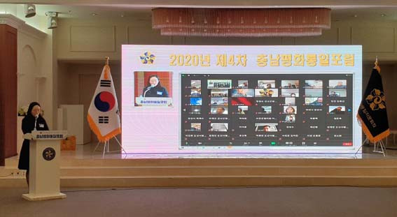 ±èÈ«±Ù Ãæ³²ºÎÀÇÀåÀº ÀÌ¾î ¡°Äڷγª19¶ó´Â ¾î·Á¿î »óȲ ¼Ó¿¡¼µµ °¢ÀÚÀÇ ÀÚ¸®¿¡¼ ¿Â¶óÀÎÀ¸·Î Âü¿©ÇØÁֽŠÀÚ¹®À§¿ø°ú Æ÷·³È¸¿ø´ÔÀÇ °ü½É°ú ÇùÁ¶·Î ¹ÎÁÖÆòÈÅëÀÏÀÚ¹®È¸ÀÇ Ãæ³²Áö¿ªÈ¸Àǰ¡ 2020³â ÃÑ 4Â÷¿¡ °ÉÄ£ Ãæ³²ÆòÈÅëÀÏÆ÷·³À» ¼º°øÀûÀ¸·Î °³ÃÖÇÒ ¼ö ÀÖ¾ú´Ù¡±¸ç °¨»çÀÇ ¸¶À½À» Ç¥Çß´Ù.