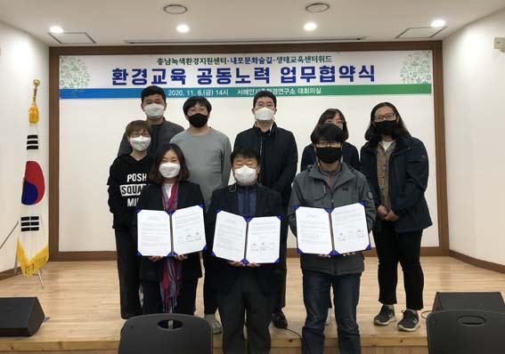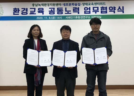 À̳¯ Çù¾à½ÄÀº Ãæ³²³ì»öȯ°æÁö¿ø¼¾ÅÍ À¯ÀçÈ£ »ç¹«±¹Àå°ú ³»Æ÷¹®È½£±æ ¹®¼ø¼ö »ç¹«Ã³Àå, »ýű³À°¼¾ÅÍ À§µåÀÇ ±¸ÁöÀº ´ëÇ¥°¡ Âü¿©ÇÑ °¡¿îµ¥ ¾÷¹«Çù¾à ü°á½ÄÀ» °®°í Çù¾à¼¸¦ ±³È¯Çß´Ù.