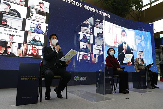 ¾ç½ÂÁ¶ Áö»ç´Â ¡°±×¸°½ºÅ¸Æ®¾÷ Ÿ¿î Á¶¼ºÀ» ÅëÇØ Æ÷½ºÆ®Äڷγª ½Ã´ë °³¹æÇü Çù·Â »ýŰ踦 ±¸ÃàÇÒ °Í¡±À̶ó¸ç ¡°½Å»ç¾÷ âÃâÀÇ ¿ä¶÷ÀÎ Ãæ³² ±×¸°½ºÅ¸Æ®¾÷ Ÿ¿î¿¡¼ ´ëÇѹα¹ ±×¸°´ºµô ½ºÅ¸Æ®¾÷ÀÇ »õ·Î¿î ¹Ì·¡°¡ ¿¸± °Í¡±À̶ó°í °Á¶Çß´Ù.