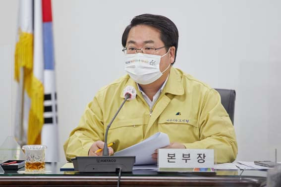 ±¹¡¤¼ÒÀå ¹× °ü°è ºÎ¼Àå 20¿© ¸íÀÇ Âü¼®ÇÑ ÀÌ ³¯ ȸÀÇ¿¡¼ ¿À¼¼Çö ½ÃÀåÀº ¡°ÀϺο¡¼ ¾Æ»ê¡¤Ãµ¾ÈÀÇ »çȸÀû °Å¸®µÎ±â 1.5´Ü°è ÁöħÀÌ °úÇÑ °Í ¾Æ´Ï³Ä´Â ÁöÀûÀÌ ³ª¿ÀÁö¸¸, °¨¿° Ãß¼¼³ª nÂ÷ °¨¿° »ç·Ê µîÀ» º¼ ¶§ ¼±Á¦Àû ´ëÀÀÀº ¿Ç¾Ò´Ù´Â »ý°¢ÀÌ µç´Ù¡±¸é¼ Äڷγª19 ¹æ¿ª¿¡ Èû¾²°í ÀÖ´Â °ü°èÀÚµéÀ» °Ý·ÁÇß´Ù.