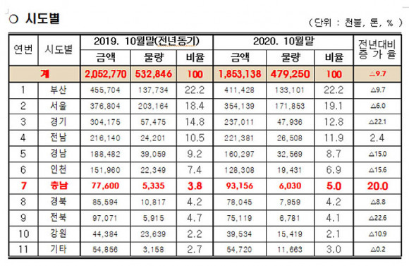 | | ¡è¡è <ÀÚ·á=Ãæ³²µµ> | ¨Ï ¿Â¾ç½Å¹® | | Àü±¹ÀûÀ¸·Î´Â Áö³´Þ ¸» 18¾ï 5õ314¸¸ ´Þ·¯·Î, Áö³ÇØ °°Àº ±â°£ 20¾ï 5õ277¸¸ ´Þ·¯¿¡ ºñÇØ 1¾ï 9õ963¸¸ ´Þ·¯(9.7%) °¨¼ÒÇß´Ù.