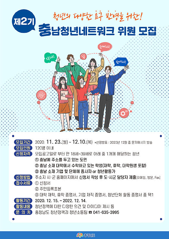 Ãæ³²µµ´Â 12¿ù 10ÀϱîÁö û³âÀÇ ÀÚ¹ßÀû ÇùÀÇüÀÎ ¡®Ãæ³² û³â ³×Æ®¿öÅ©¡¯ Á¦2±â À§¿ø 120¿©¸íÀ» ¸ðÁýÇÑ´Ù°í ¹àÇû´Ù.