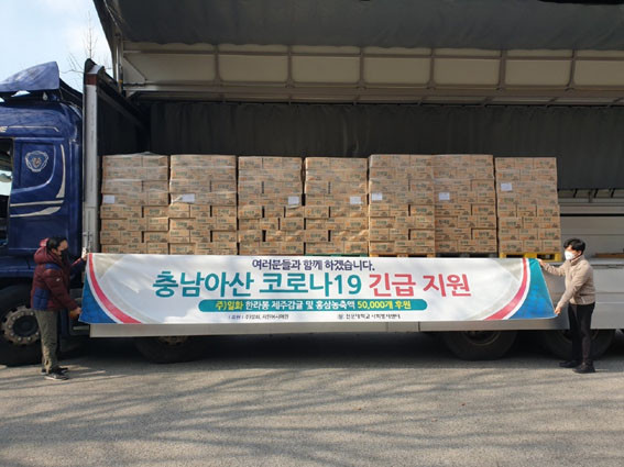 ¶ÇÇÑ ½ÄÀ½·á °Ç°±â¾÷ÀÎ ¢ßÀÏÈ¿¡¼µµ ¹°Ç°À» Áö¿øÇß´Ù. Áö¿øÇÑ ¹°Ç°Àº È«»ï³óÃà¾× 2¸¸Æ÷¿Í ÇѶóºÀ Á¦ÁÖ°¨±Ö 340ml 3¸¸¿© °³·Î ÀÚ¿øºÀ»ç´ÜüÀÎ ¡®¾Ö¿ø¡¯À» ÅëÇØ ¼±¹®´ë Çлýµé°ú ¾Æ»ê Áö¿ª¿¡¼ ¹ß»ýÇÑ ÀÚ°¡°Ý¸® ´ë»óÀڵ鿡°Ô Àü´ÞµÉ ¿¹Á¤ÀÌ´Ù.