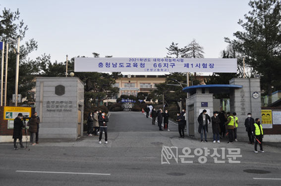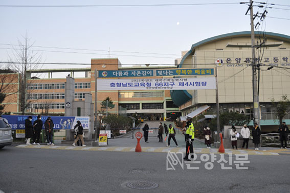 À̳¯ ¿Â¾ç°íµîÇб³ Á¤¹®¿¡´Â ±èÁöö Ãæ³²µµ±³À°°¨°ú À̹®Èñ ¾Æ»ê±³À°ÀåÀÌ À̸¥ ¾ÆÄ§ºÎÅÍ ³ª¿Í ¼Ó¼Ó µµÂøÇÏ´Â ¼öÇè»ýµéÀ» ¸ÂÀÌÇÏ°í °Ý·ÁÇß´Ù.