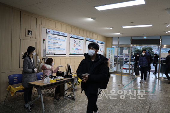 À̳¯ °¢ ½ÃÇèÀå¿¡´Â ¼Õ¼Òµ¶Á¦°¡ ºñÄ¡µÇ°í, ±³½Ç¿£ Ã¥»ó ĸ·À̰¡ ¼³Ä¡µÈ °¡¿îµ¥, ÀԽǵµ ½ÅºÐ È®ÀÎ ¿Ü¿¡ ¹ß¿Ã¼Å© µî ¿¹³â¿¡ º¼ ¼ö ¾ø¾ú´ø °úÁ¤ÀÌ Ãß°¡µÆ´Ù. ÀÌ¿¡ µû¶ó ½ÃÇèÀå °³¹æµµ Á¾Àü 7½Ã¿¡¼ 6½Ã30ºÐÀ¸·Î 30ºÐ ¾Õ´ç°ÜÁ³´Ù.