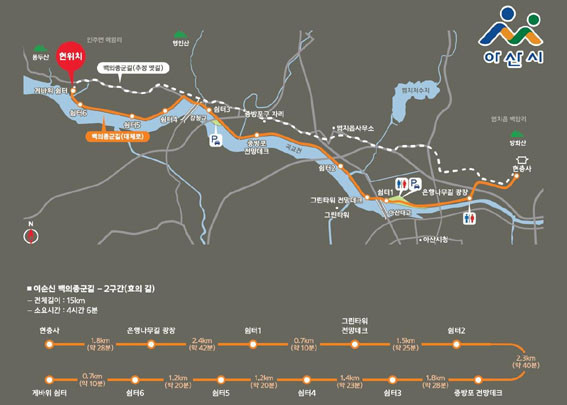 ¶ÇÇÑ ¹éÀÇÁ¾±º±æÀ» µû¶ó °È´Ùº¸¸é ±× Áö¿ªÀÇ ¿ª»ç¿Í ¹®È¸¦ ¾Ë ¼ö ÀÖ´Â Áö¸í, À¯·¡ µî¿¡ °üÇÑ ¼³¸í¾È³»ÆÇÀ» ¼³Ä¡ÇØ °¡¾ê³ª·ç, Áß¹æÆ÷±¸ÀÚ¸®, °íºÐ´Ù¸®(ÍØÎé) µî ÀØÇôÁ®°¡´Â ±× Áö¿ªÀÇ ¿¾ À̾߱⵵ ÇÔ²²ÇÒ ¼ö ÀÖ´Ù.
