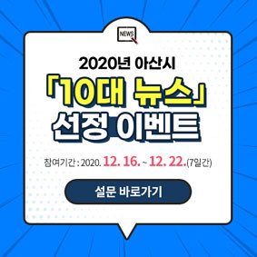 | | ¡è¡è ¡ã2020³â ¾Æ»ê½Ã 10´ë ´º½º ¼±Á¤ À̺¥Æ® ÆË¾÷ À̹ÌÁö | ¨Ï ¿Â¾ç½Å¹® | ¾Æ»ê½Ã(½ÃÀå ¿À¼¼Çö)°¡ ¿Â¶óÀÎ ½Ã¹Î ÅõÇ¥·Î ¡®2020³â 10´ë ´º½º¡¯¸¦ ¼±Á¤ÇÑ´Ù.