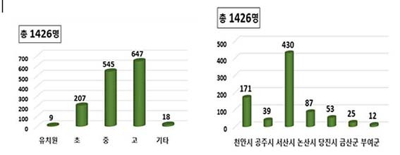 ÃæÃ»³²µµ Çо÷Áß´Ü Ã»¼Ò³âÀº 2õ6¸í(2019.3.1.~2020.2.28)À¸·Î Áý°èµÈ´Ù(ÃæÃ»³²µµ, 2020). ÀÌÁß¿¡¼ ºñÀΰ¡ ´ë¾ÈÇб³¿¡ ´Ù´Ï´Â Çлý ¼ö(¿¹ºñ°úÁ¤(¼»ê½Ã) 18¸í Æ÷ÇÔ)´Â 1õ426¸í(ÃæÃ»³²µµ, 2020)ÀÌ´Ù. 2019³â Çо÷Áß´Ü Ã»¼Ò³âÀÇ ¾à 71.2%°¡ ºñÀΰ¡ ´ë¾ÈÇб³¿¡ ´Ù´Ï°í ÀÖ´Â °ÍÀ¸·Î ÆÄ¾ÇµÈ´Ù.