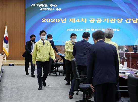 ÇÑÆí À̳¯ °£´ãȸ´Â ¡®°ø°øºÎ¹® Äڷγª19 ¹æ¿ª°ü¸® °È ¹æ¾È¡¯¿¡ µû¶ó Âü¼® ÀοøÀ» 50¸í À̳»·Î Á¦ÇÑÇϰí, ¹æ¿ª¼öÄ¢À» öÀúÈ÷ ÁؼöÇØ ½Ç½ÃÇß´Ù.