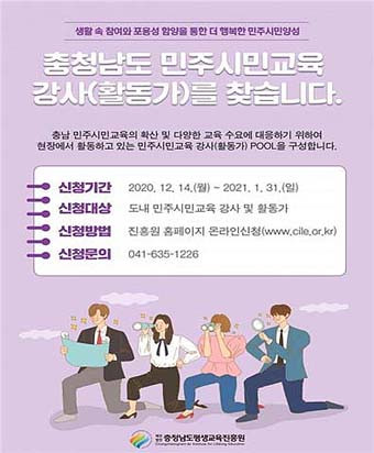 | | ¨Ï ¿Â¾ç½Å¹® | (Àç)Ãæ³²Æò»ý±³À°ÁøÈï¿ø(¿øÀå Á¶ÀÌÇö)Àº Ãæ³²µµ³»¿¡¼ Ȱµ¿Çϰí ÀÖ´Â ¡®¹ÎÁֽùα³À° °»ç(Ȱµ¿°¡) POOLÀ» ±¸ÃàÇϱâ À§ÇØ 2021³â 1¿ù 31ÀϱîÁö ½ÅûÁ¢¼ö¸¦ ¹Þ´Â´Ù°í ¹àÇû´Ù.