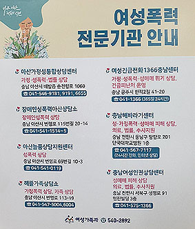 ¾È³» ½ºÆ¼Ä¿¿¡´Â °ü³» ¼º¡¤°¡Á¤Æø·Â»ó´ã °ü·Ã 4°³ ½Ã¼³°ú 1366Ãæ³²¼¾ÅÍ, ÇØ¹Ù¶ó±â¼¾ÅÍ, ¼º¸Å¸Å °ü·Ã »ó´ã½Ã¼³ÀÇ ÁÖ¼Ò¿Í ¿¬¶ôó°¡ ±âÀçµÅ ÀÖÀ¸¸ç ÃßÈÄ Ã»»ç¡¤À¾¸éµ¿¡¤°ø°øÈÀå½Ç¡¤À¯°ü½Ã¼³¿¡ ¹èºÎ ºÎÂøÇÒ °èȹÀÌ´Ù.