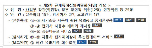 »ê¾÷Åë»óÀÚ¿øºÎ(Àå°ü ¼ºÀ±¸ð)´Â 12¿ù 23ÀÏ 2020³âµµ Á¦5Â÷ »ê¾÷À¶ÇÕ ±ÔÁ¦Æ¯·Ê½ÉÀÇÀ§¿øÈ¸(¼¸é½ÉÀÇ)¸¦ ÅëÇØ, ½Å±Ô¾È°ÇÀÎ ¡®ÀÚ±â¼ÒÀ¯ ÀÚµ¿Â÷ Ȱ¿ë ¿Á¿Ü±¤°í Áß°³Ç÷§Æû¡¯, ¡®Çؾç À¯Ãâ±â¸§ ȸ¼ö·Îº¿¡¯°ú, Áö³¹ø ½ÂÀÎÇß´ø ¡¯Àü±âÂ÷ »ç¿ëÈÄ ¹èÅ͸® Àç»ç¿ë¡®, ¡¯°øÀ¯¹Ì¿ë½Ç ¼ºñ½º¡®, ¡¯ÀÚµ¿Â÷ ÀüÀÚÁ¦¾îÀåÄ¡ ¹«¼±¾÷µ¥ÀÌÆ® ¼ºñ½º¡® µî 18°ÇÀÇ ¾È°ÇÀ» ½ÂÀÎÇß´Ù.