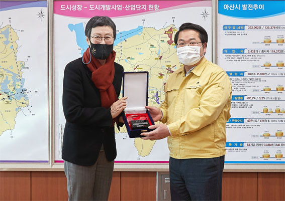 ¿¬¸» Äڷγª19ÀÇ ±Þ¼ÓÇÑ È®»êÀ¸·Î ½Ã»ó½ÄÀÌ Ãë¼ÒµÊ¿¡ µû¶ó ´ëÇÑÀå¾ÖÀÎüÀ°È¸ ÀüÇýÀÚ »ç¹«ÃÑÀåÀÌ 1¿ù 6ÀÏ ¾Æ»ê½Ã¸¦ Á÷Á¢ ¹æ¹®ÇØ ¾Æ»ê½Ã Àå¾ÖÀÎüÀ°È¸Àå(½ÃÀå ¿À¼¼Çö)¿¡°Ô »óÆÐ¸¦ Àü´ÞÇß´Ù.