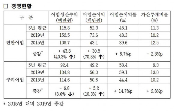ÇÑÆí 2019³â ±âÁØ µµ³» ¿¬¾È¾î¾÷ ¾î¾÷¼øÀÌÀÍ(7õ360¸¸ ¿ø)Àº Àü±¹ Æò±Õ ´ëºñ 2õ600¸¸ ¿ø, ±¸È¹¾î¾÷(560¸¸ ¿ø)Àº 300¸¸ ¿ø ´õ ³ôÀº °ÍÀ¸·Î ³ªÅ¸³µ´Ù.