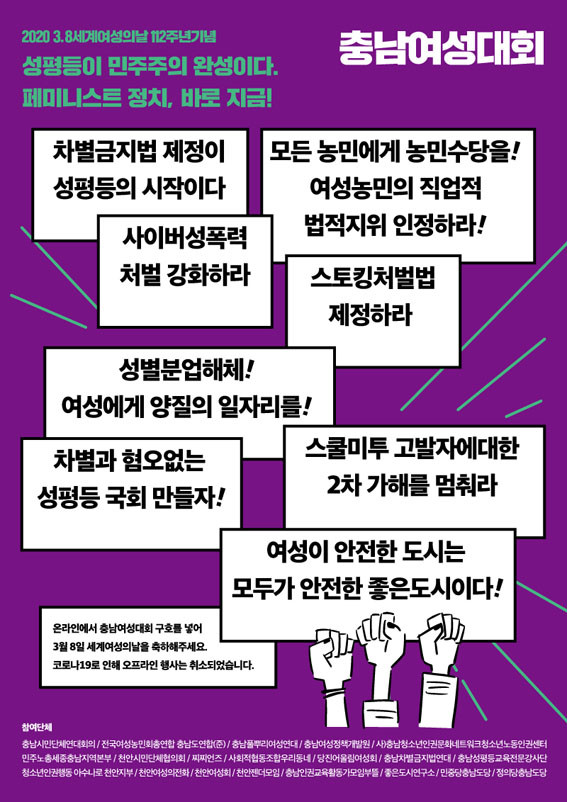 ½ÅÁ¾Äڷγª19 È®»ê ¹æÁö¸¦ À§ÇØ ´çÃÊ °èȹµÆ´ø ¡®Ãæ³²¿©¼º´ëȸ¡¯ ÁýȸÇà»ç´Â Ãë¼ÒÇßÀ¸³ª ¼ºÆòµî Ãæ³²À» À§ÇÑ ÀÇÁ¦¸¦ ¼±Á¤ÇØ SNS(À¯Åõºê)¿Í Ç÷£Ä«µå¸¦ 15°³ ½Ã¡¤±º Àü¿ª¿¡ ¼³Ä¡ÇÏ´Â µî ¼¼°è¿©¼ºÀÇ ³¯ÀÇ Àǹ̸¦ È«º¸Çϰí ÀÖ´Ù.