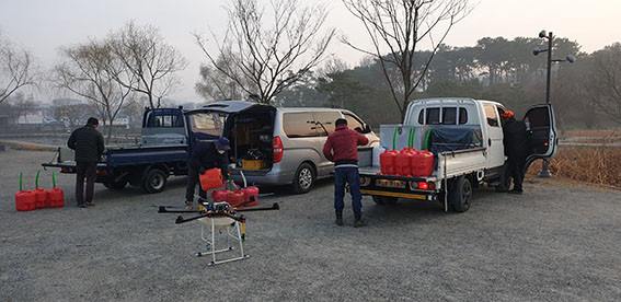 µå·Ð ¹æ¿ªÀº ¾àǰÀ» žÀçÇÑ µå·ÐÀÌ °øÁß¿¡¼ ¾àǰÀ» »ìÆ÷Çϱ⠶§¹®¿¡ ³ÐÀº ¸éÀûÀ» ´Ü½Ã°£¿¡ ¼Òµ¶ÇÒ ¼ö ÀÖ¾î ¿ÜºÎ ¹æ¿ª¿¡ È¿À²ÀûÀÌ´Ù.