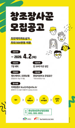 âÁ¶Àå»ç²ÛÀº õ¾È¿ªÁöÇÏ»ó°¡ Ã¢¾÷ »ýŰè Á¶¼ºÀ» Áö¿øÇϱâ À§ÇØ ÃÖ´ë 500¸¸ ¿ø À̳»ÀÇ Ã¢¾÷Áö¿ø±Ý°ú â¾÷°ø°£À» Áö¿øÇÏ´Â ÇÁ·ÎÁ§Æ®·Î ¼±Á¤ÀÚ(ÆÀ)´Â â¾÷±³À°ÀÌ Ãß°¡·Î Áö¿øµÈ´Ù.
