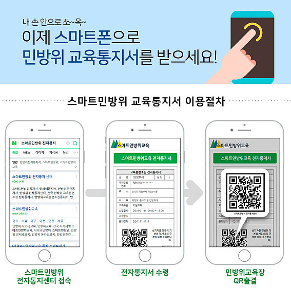 ¹Î¹æÀ§ ÀüÀÚÅëÁö¡¤Ãâ°á ½Ã½ºÅÛÀ̶õ ¹Î¹æÀ§±³À° ½Ç½Ã Àü ¹Î¹æÀ§´ë¿øµé¿¡°Ô īī¿À ¾Ë¸²ÅåÀ¸·Î ÀüÀÚÅëÁö¼¸¦ ¹ß¼ÛÇÏ¸é ¹Î¹æÀ§ ´ë¿øµéÀº º»ÀÎ ÀÎÁõ ÈÄ ÀüÀÚÅëÁö¼¸¦ È®ÀÎÇϰí, ±³À° Âü¼® ½Ã ÅëÁö¼ QRÄÚµå·Î Ãâ¼® ó¸®¿Í ±³À° À̼ö È®ÀÎÀÌ °¡´ÉÇÑ ½Ã½ºÅÛÀÌ´Ù.