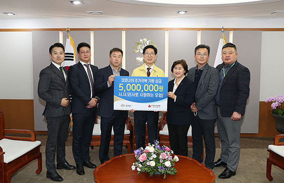 Ãæ³²µµ´Â 3¿ù 16ÀÏ µµÃ» Á¢°ß½Ç¿¡¼ Äڷγª19 ¼º±Ý Àü´Þ½ÄÀ» ¿°í, ¼·Î »ç¶ûÇÏ´Â ¸ðÀÓÀ¸·ÎºÎÅÍ ¼º±Ý 500¸¸ ¿øÀ» Àü´Þ ¹Þ¾Ò´Ù.