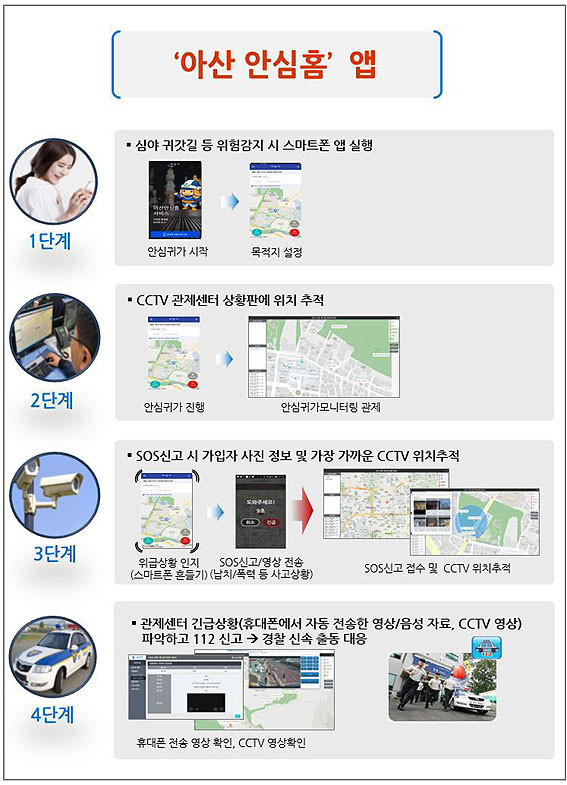 ¾Æ»ê¾È½ÉȨ´Â CCTV¿Í ½º¸¶Æ®Æù GPS Á¤º¸°¡ ¿¬°èµÅ ½º¸¶Æ®Æù »ç¿ëÀÚ°¡ ¾îÇÃÀ» ½ÇÇà½ÃŰ¸é ¹Ù·Î ¾È½É±Í°¡¼ºñ½º°¡ Á¦°øµÈ´Ù.