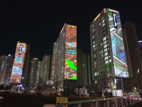 APT ART(¾ÆÆÄÆ® ¾ÆÆ®)¶ó À̸§ ºÙÀÎ À̹ø ÇÁ·ÎÁ§Æ®´Â ½Ã¹ÎµéÀÌ ½ÇÁ¦·Î °ÅÁÖÇÏ´Â ¾ÆÆÄÆ®ÀÇ À¯ÈÞ°ø°£ÀÎ ¿Üº®¿¡ ÇÁ·ÎÁ§ÅÍ ºöÀ» ¿µ»çÇÏ¿© ¹Ìµð¾î¾ÆÆ® ¿µ»óÀ» ¼ÛÃâÇÏ´Â Àü½ÃÀÌ´Ù.