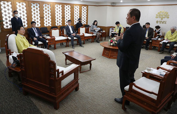 | | ¡è¡è <»çÁøÁ¦°ø=Ãæ³²µµ> | ¨Ï ¿Â¾ç½Å¹® | | Ãæ³²µµ´Â 4¿ù 1ÀÏ µµÃ» Á¢°ß½Ç¿¡¼ Äڷγª19ÀÇ Áö¿ª»çȸ È®»ê Â÷´ÜÀ» À§ÇÑ ¡®°ü±¤¡¤À§»ý¾÷°è °ü°èÀÚ °£´ãȸ¡¯¸¦ ¿°í, Äڷγª19 ´ëÀÀ ÇùÁ¶¸¦ ¿äûÇß´Ù.