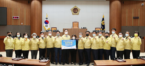 À¯º´±¹ ÀÇÀåÀ» ºñ·ÔÇÑ ÀÇ¿øµéÀº 1ÀÏ º»È¸ÀÇÀå¿¡¼ Ãæ³²»çȸº¹Áö°øµ¿¸ð±Ýȸ ¹ÚÀºÈñ »ç¹«Ã³Àå¿¡°Ô Äڷγª19 ±Øº¹À» À§ÇÑ ¼º±Ý 1õ¸¸ ¿øÀ» Àü´ÞÇß´Ù.