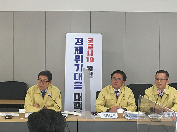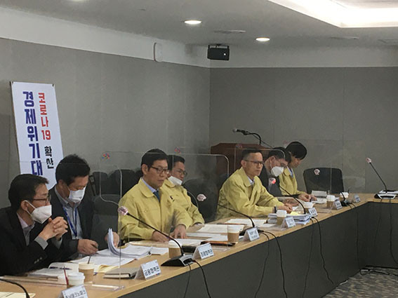 °æÁ¦À§±â´ëÀÀ´ëÃ¥º»ºÎ°¡ °¡µ¿µÈ ÀÌÈÄ Ã³À½ ¿¸° À̳¯ ȸÀÇ¿¡´Â ±è¿ëÂù ÇàÁ¤ºÎÁö»ç¸¦ ºñ·ÔÇÑ ±è¼®ÇÊ °æÁ¦½ÇÀå, 13°³¹Ý ºÎ¼°úÀå, °æÁ¦ °ü·Ã À¯°ü±â°ü °ü°èÀÚ µîÀÌ Âü¼®Çß´Ù.
