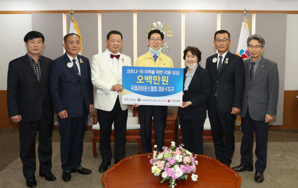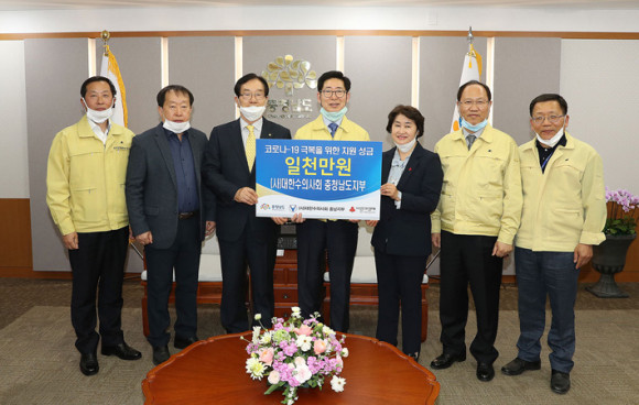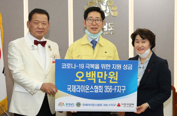 ´ëÇѼöÀÇ»çȸ ÃæÃ»³²µµÁöºÎ¿Í ±¹Á¦¶óÀ̿½ºÇùȸ 356-FÁö±¸°¡ Äڷγª19·Î ¾î·Á¿òÀ» °Þ°í ÀÖ´Â Áö¿ª¹ÎÀ» À§ÇØ ¼º±ÝÀ» ÄèôÇß´Ù.