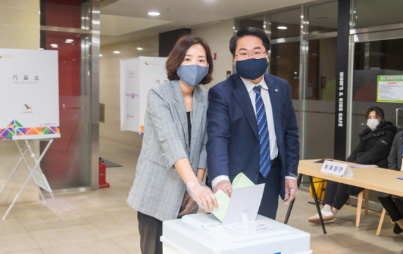 ¿À¼¼Çö ¾Æ»ê½ÃÀåÀº 4¿ù 15ÀÏ ¿Â¾ç3µ¿ Á¦6ÅõÇ¥¼Ò¿¡¼ Á¦21´ë ±¹È¸ÀÇ¿ø ¼±°Å ÅõÇ¥¸¦ ½Ç½ÃÇß´Ù.