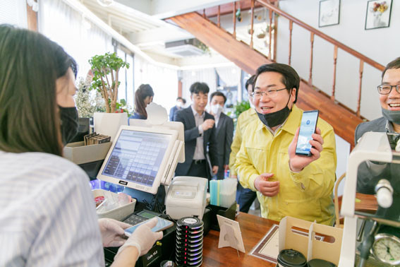 | | ¡è¡è ¡ã¿À¼¼Çö ½ÃÀåÀÌ ¸ð¹ÙÀÏ ¾Æ»ê»ç¶û»óǰ±ÇÀ» ÀÌ¿ë °¡´ÉÇÑ Áö¿ª»óǰ±Ç chakÀ¸·Î °áÁ¦¸¦ ¸¶Ä£ ÈÄ ±â³äÃÔ¿µÇϰí ÀÖ´Ù. <»çÁøÁ¦°ø=¾Æ»ê½Ã> | ¨Ï ¿Â¾ç½Å¹® | | ¾Æ»ê½Ã(½ÃÀå ¿À¼¼Çö)°¡ 4¿ù 20ÀÏ ¾Æ»ê»ç¶û»óǰ±ÇÀ» ½º¸¶Æ®Æù ¾Û(Áö¿ª»óǰ±Ç chak)À¸·Î »ç¿ëÇÒ ¼ö ÀÖ´Â ¼ºñ½º¸¦ ½ÃÀÛÇÔ¿¡ µû¶ó, ¿À¼¼Çö ½ÃÀåÀº ¸ð¹ÙÀÏ ¾Æ»ê»ç¶û»óǰ±ÇÀÇ À¯¿ë¼º°ú Æí¸®¼ºÀ» ¾Ë¸®°íÀÚ °ü³» À½½ÄÁ¡°ú Ä«Æä¸¦ ¹æ¹®Çß´Ù.