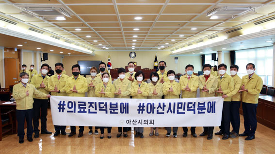 Á¦220ȸ ÀÓ½Ãȸ Á¦2Â÷ º»È¸ÀǸ¦ ¸¶Ä£ 4¿ù 24ÀÏ ¾Æ»ê½ÃÀÇȸ ÀÇ¿øµéÀº ¼º¼÷ÇÑ ¾Æ»ê½Ã¹Î°ú ÀÇ·áÁøÀÇ Çå½Å°ú ³ë°í¿¡ °¨»ç¿Í ÀÀ¿øÀÇ ¸¶À½À» ÀüÇÏ´Â ¡®´öºÐ¿¡ Ä·ÆäÀΡ¯À» ½Ç½ÃÇß´Ù.