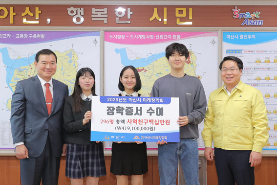 ¿ÃÇØ ÀåÇÐ±Ý Áö¿ø ±Ô¸ð´Â ÃÑ 296¸í¿¡ 4¾ï 1õ910¸¸ ¿øÀ¸·Î, ¼ºÀû¿ì¼öÀåÇбÝÀ¸·Î ÁßÇлý 48¸í¿¡°Ô 960¸¸ ¿ø, °íµîÇлý 209¸í¿¡°Ô 2¾ï 9õ620¸¸ ¿ø, ´ëÇлý 17¸í¿¡°Ô 8õ500¸¸ ¿ø, Ư±âÀåÇлý 21¸í¿¡°Ô 2õ430¸¸ ¿ø, ¼øÁ÷°ø¹«¿ø ÀÚ³à 1¸í¿¡°Ô 400¸¸ ¿øÀÌ Áö±ÞµÈ´Ù.