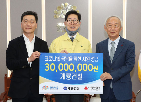Ãæ³²µµ´Â 4¿ù 28ÀÏ µµÃ» Áý¹«½Ç¿¡¼ ¾ç½ÂÁ¶ Ãæ³²Áö»ç°¡ À̽ÂÂù °è·æ°Ç¼³ ´ëÇ¥ÀÌ»ç·ÎºÎÅÍ Äڷγª19 ¼º±ÝÀ» Àü´Þ ¹Þ¾Ò´Ù°í ¹àÇû´Ù.